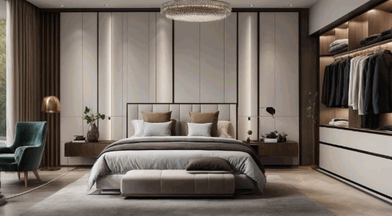 When incorporating a built-in wardrobe into a modern master bedroom, it’s important to coordinate with the existing décor for a cohesive look.